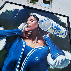 Réalisation d’une peinture murale pour la décoration de l’usine de La Manufacture Perrin.